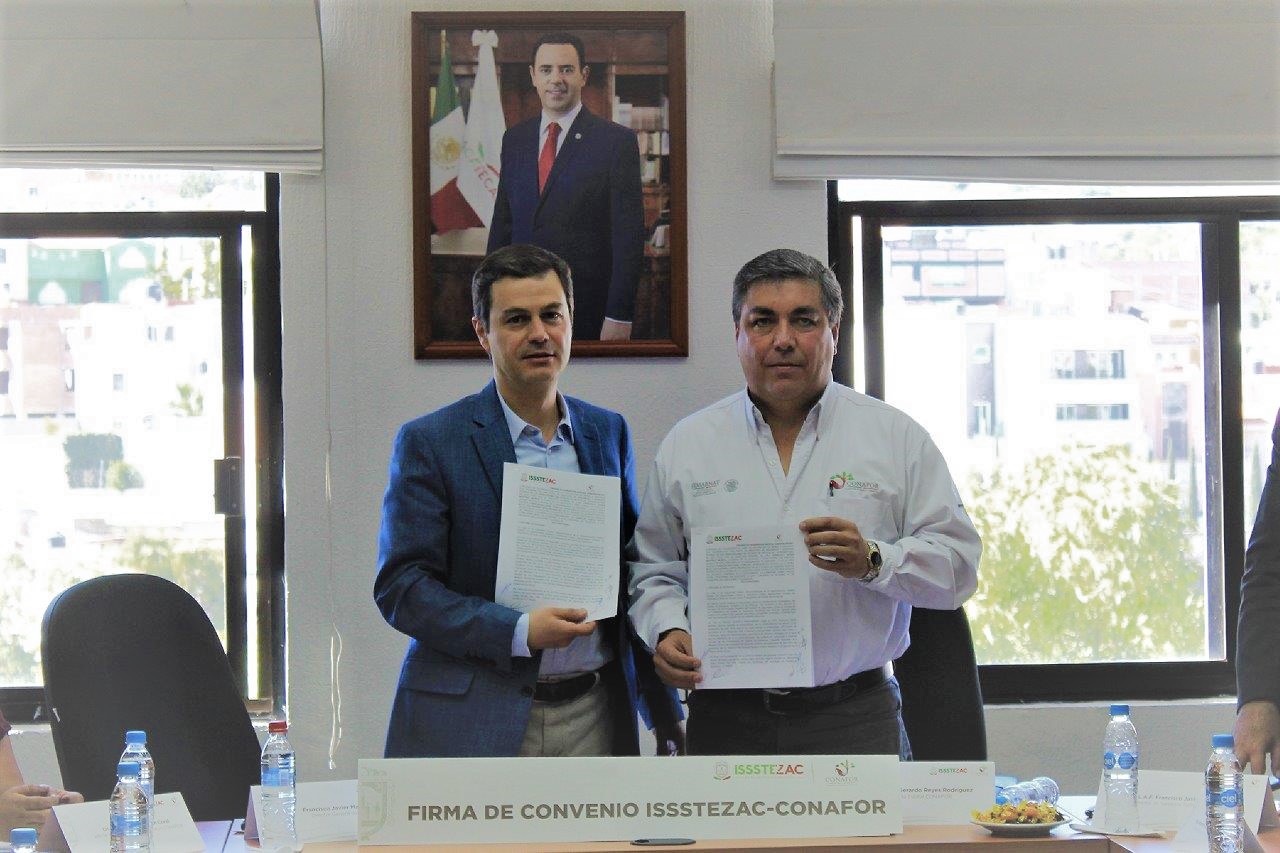 Con la finalidad de fortalecer la economía de las familias zacatecanas de la Gerencia estatal de la Comisión Nacional Forestal (Conafor) en Zacatecas se firmó un convenio de colaboración con el Instituto de Seguridad y Servicios Sociales de los Trabajadores del Estado de Zacatecas (Issstezac).