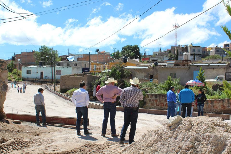 El presidente municipal supervisa la obra de pavimentación que se lleva a cabo en el tramo que conectará a El Peñasco y Las Lomas del Consuelo.