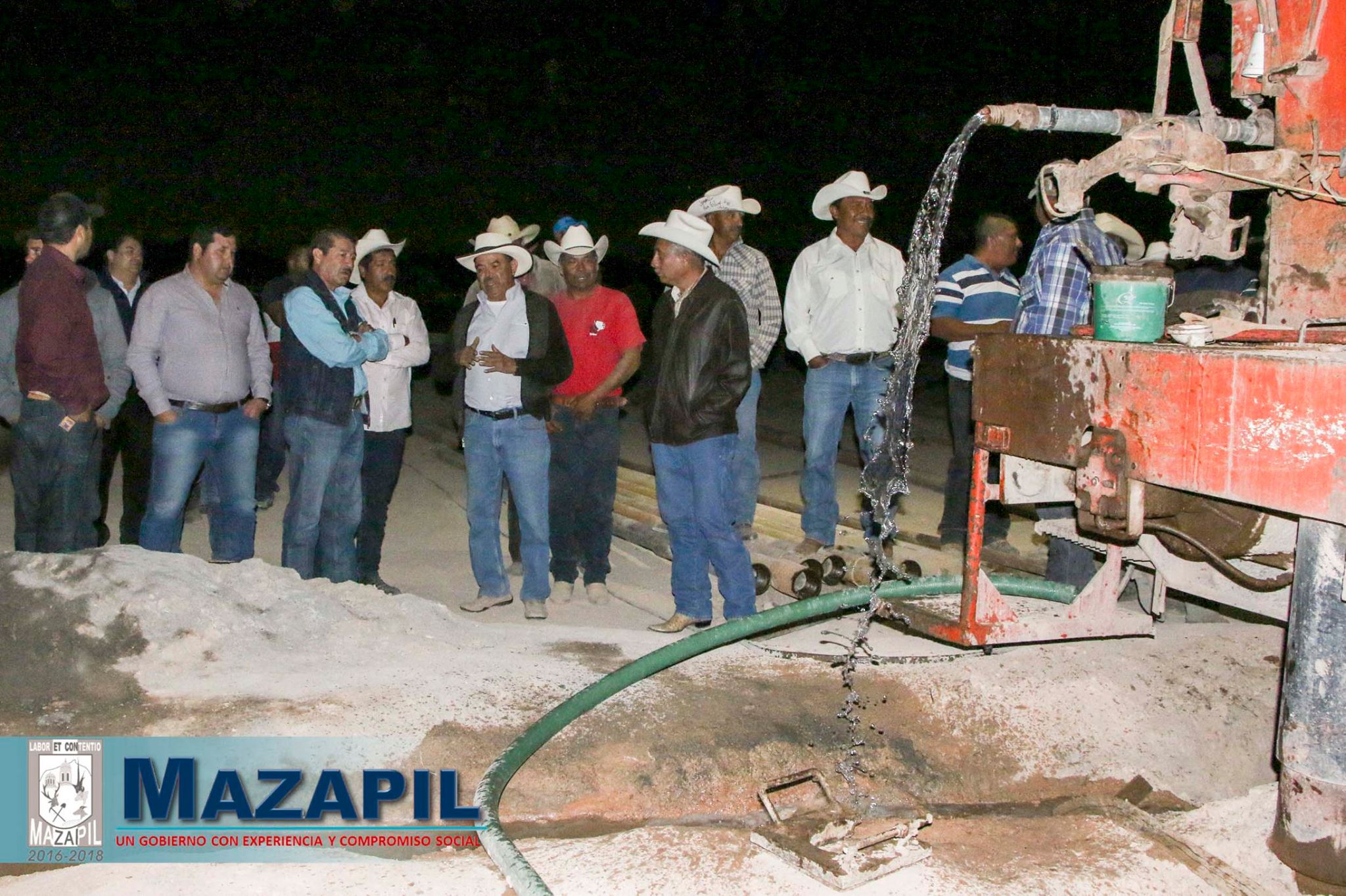 Ignacio Allende, Mazapil, Zac.- Tras décadas de espera y la infructuosa perforación de más de 20 pozos en la búsqueda de agua, el H. Ayuntamiento de Mazapil, logro con éxito encontrar el vital líquido, generando con ello un avance histórico para las familias de esta la comunidad de Ignacio Allende.