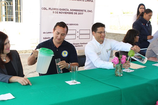 SOMBRERETE,ZAC.- El acceso a servicios de agua, saneamiento e higiene sin riesgos, podría evitar que muchas personas sufran enfermedades, e incluso la muerte. Es por ello que la Secretaria de Salud del Estado, COFEPRIS (Comisión Federal para la Protección contra Riesgos Sanitarios) y el gobierno municipal hicieron posible la Entrega- Recepción de dos Filtros Comunitarios Purificadores Microbiológicos de Agua para la comunidad de Flores García.