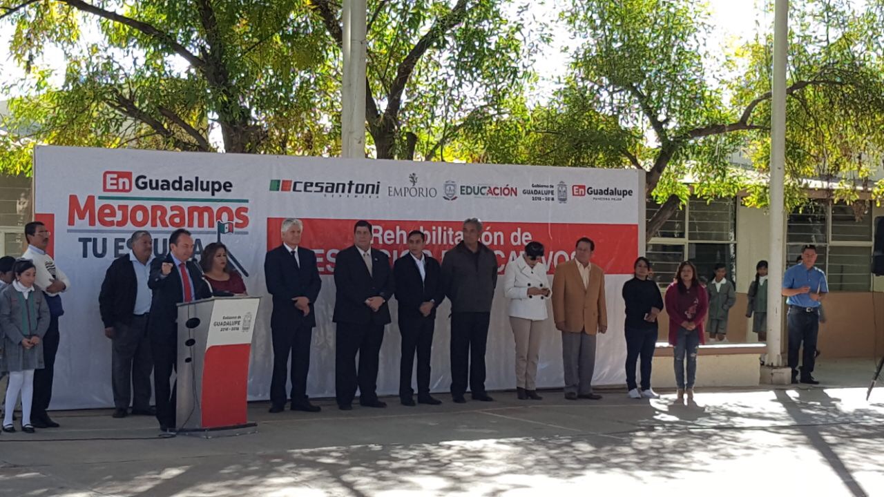 Guadalupe, Zacatecas.- Con la finalidad de impulsar la educación de niños y jóvenes, el Ayuntamiento de Guadalupe y la Secretaría de Educación de Zacatecas (Seduzac) contribuyen con la mejora de centros escolares mediante el programa En Guadalupe Mejoramos tu Escuela, puesto en marcha en meses pasados por el alcalde Enrique Guadalupe Flores Mendoza en conjunto con los regidores del municipio y autoridades educativas estatales.