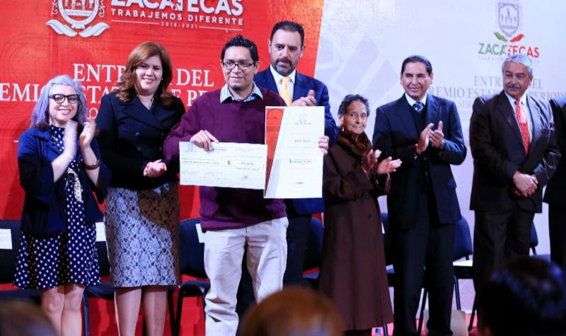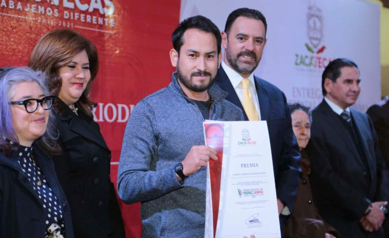 De igual manera, Erick Humberto Flores, fue ganador en la categoría prensa escrita, con entrevista al reconocido fotógrafo Pedro Valtierra; en esta misma modalidad, el mandatario estatal entregó una mención honorífica a Raúl García, por su trabajo titulado: «El deteriorado Prometeo», publicado en el periódico El Sol de Zacatecas.