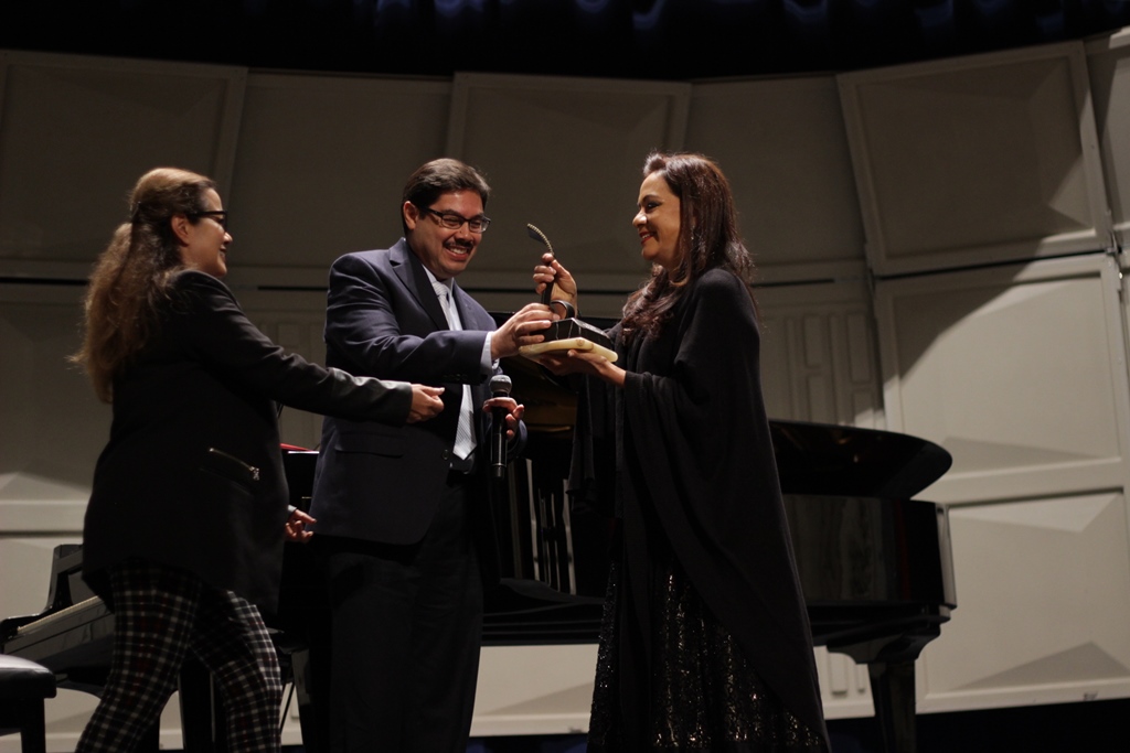Posterior a la primera parte del concierto, Encarnación Vázquez fue laureada con la presea Manuel M. Ponce, escultura realizada en mármol zacatecano por el escultor Ivan Leaños, que le fue entregada por Alfonso Vázquez Sosa, director del Instituto Zacatecano de Cultura (IZC) “Ramón López Velarde”.