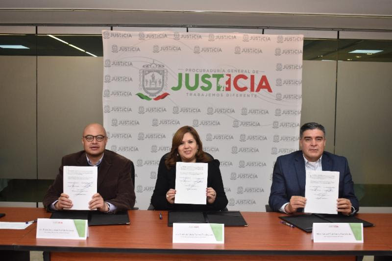 Zacatecas, Zac.- Titulares de la Procuraduría General de Justicia (PGJE) y la Secretaría de Seguridad Pública (SSP) del Gobierno del Estado firmaron un convenio de colaboración de supervisión y seguimiento de Medidas de Protección dictadas por servidores públicos del Centro de Justicia para las Mujeres (CJM).