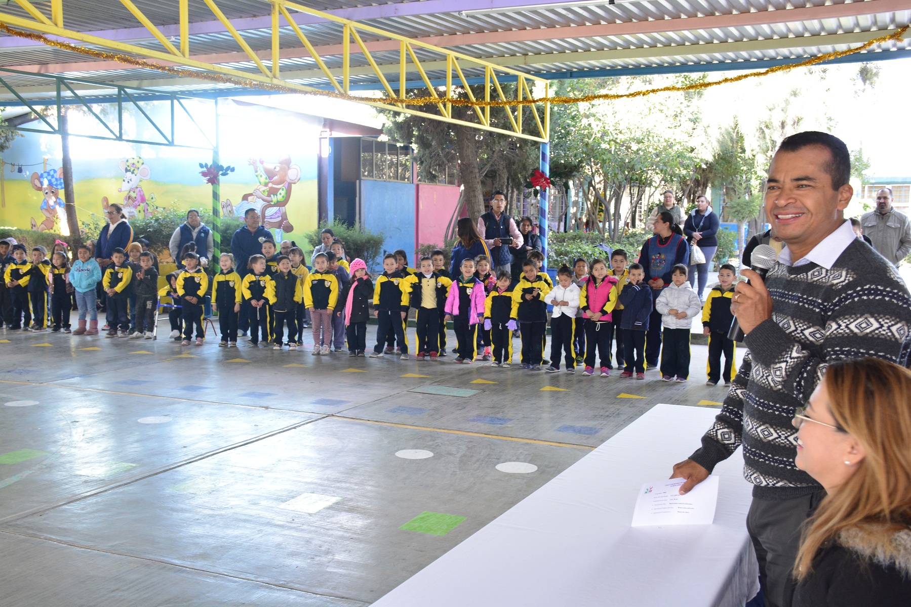 Agradeció a la secretaria de educación Gema Mercado Sánchez, por el trabajo realizado en conjunto, ya que para la presidencia municipal es difícil atender todas las necesidades de los planteles educativos y afortunadamente, gracias a la coordinación entre autoridades educativas, civiles y padres de familia es que se ha logrado apoyar a un gran número de instituciones.
