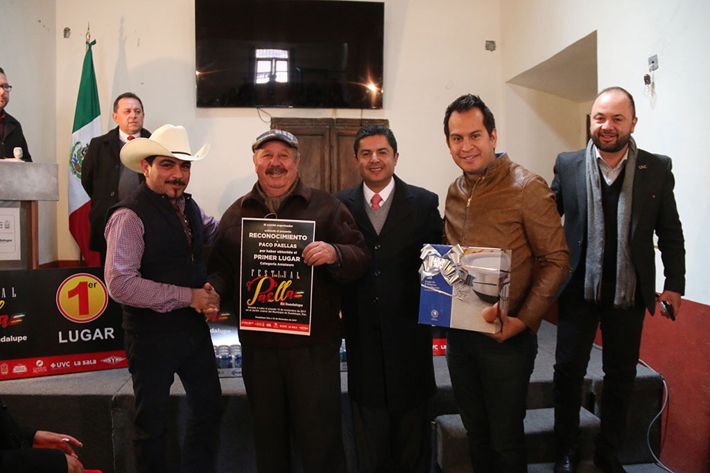 Guadalupe, Zacatecas.- Con la presencia especial de Pastor Chef y los semifinalistas del programa televisivo Master Chef México, el alcalde Enrique Guadalupe Flores Mendoza premió a los ganadores del Primer Festival de la Paella en Guadalupe e invitó a todos los participantes a seguir promoviendo las riquezas gastronómicas del municipio y del estado.