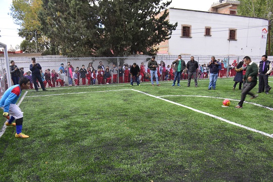 Por ello el júbilo estalló cuando el munícipe y la legisladora realizaron el corte simbólico del listón, acompañados por autoridades educativas, padres de familia, directivos, maestros y alumnos. Al primer silbatazo, los invitados especiales probaban suerte disparando un tiro penal, que algunos anotaron y otros no; el portero de la escuela se lució con varias atajadas.