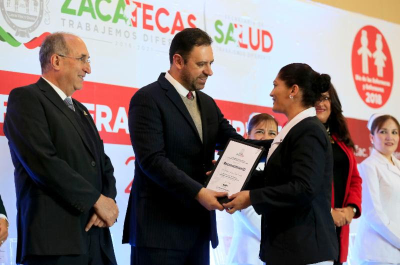 Cabe destacar que el Jefe del Ejecutivo también entregó ocho reconocimientos a enfermeras y enfermeros destacados, quienes por desempeño a lo largo de 2017 propiciaron un beneficio para miles de familias zacatecanas.