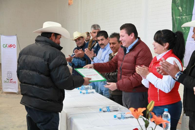 Acompañado por los presidentes municipales de Miguel Auza, Armando García Ortiz, y de Juan Aldama, Rafael Castrillo, así como el representante del alcalde de Francisco R. Murguía, Blas Ávalos, el Secretario del Campo entregó 30 sementales caprinos F1.