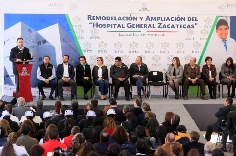 El Gobernador Alejandro Tello y el Director General del Instituto de Seguridad y Servicios Sociales de los Trabajadores del Estado (ISSSTE), José Reyes Baeza, entregaron a los zacatecanos el nuevo Hospital General del Instituto, en cuya ampliación se invirtieron 352.4 millones de pesos
