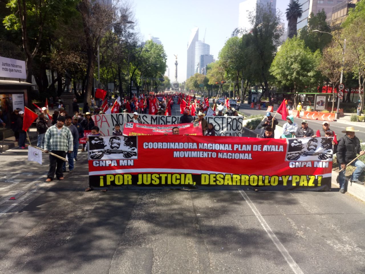 Más de cinco mil campesinos agrupados en la Coordinadora Nacional Plan de Ayala-Movimiento Nacional se movilizan hoy a la Secretaría de Gobernación en demanda de instalación de una mesa de negociación para dar solución a frenar la Ley de Seguridad Interior, frenar el alza a precios de la canasta básica alimentaria que han aumentado en 17.7%, poner alto a los megaproyectos de mineras canadienses y respeto a los derechos humanos de indígenas y campesinos.