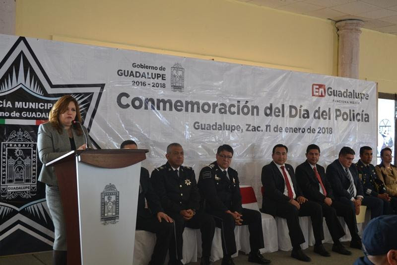 Guadalupe, Zac.- Al conmemorar el Día del Policía, la Secretaria General de Gobierno, Fabiola Gilda Torres Rodríguez, refrendó el compromiso de la administración que encabeza el Gobernador Alejandro Tello para seguir la coordinación de esfuerzos con los municipios a favor de la seguridad.