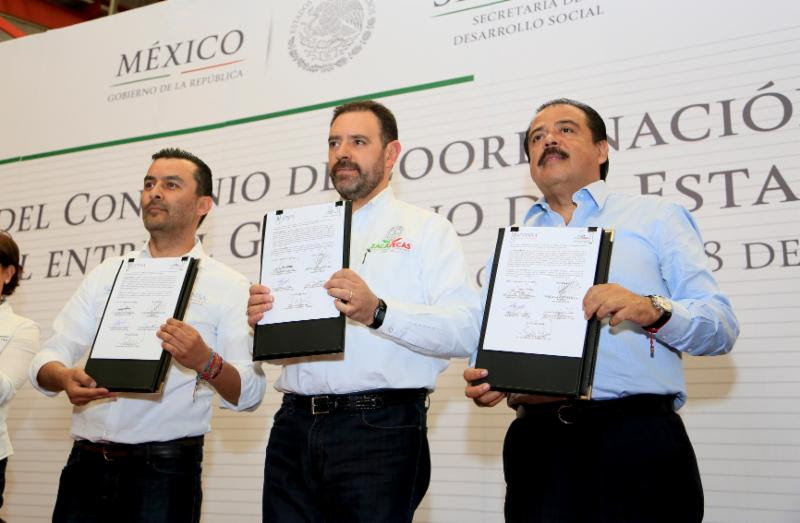 Este viernes, el mandatario y el funcionario federal realizaron una gira de trabajo en Zacatecas, donde entregaron apoyos para el fomento a la economía social y firmaron un convenio que garantiza la adquisición de toneladas de frijol a productores locales por parte Diconsa, dependiente de la Sedesol y que es la red de abasto social más grande del país.