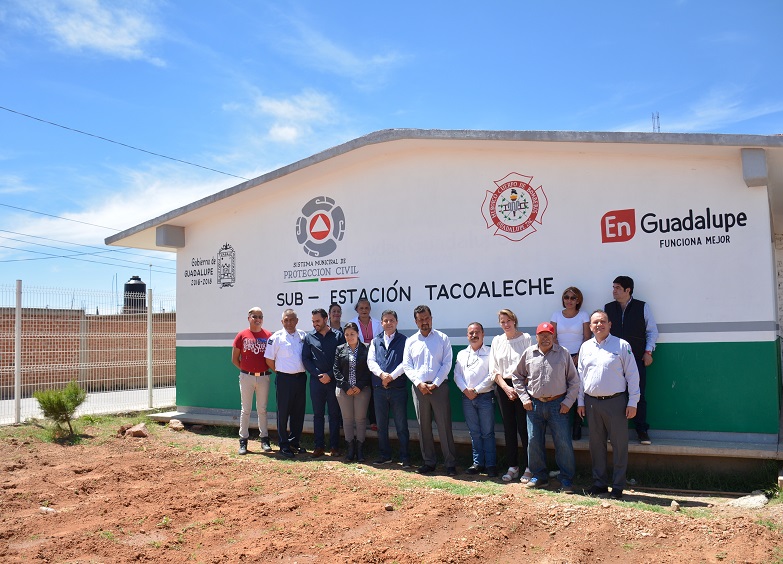Guadalupe, Zacatecas.- A fin de atender cualquier contingencia y evitar afectaciones a la población, el alcalde Enrique Guadalupe Flores Mendoza encabezó la inauguración de la Subestación de Protección Civil en la comunidad de Tacoaleche.