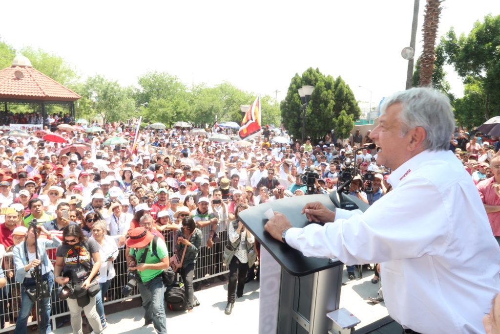 Ante miles de asistentes en San Pedro de las Colonias, Coahuila, Andrés Manuel López Obrador, aseguró que al inicio de su mandato como Presidente de la República, se tiene pensado destinar 1 billón de pesos al año para el desarrollo de áreas productivas, el rescate del campo, ejidos y acabar con el problema del agua.