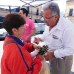 El candidato se reunión con parte de su equipo en el jardín Independencia de la capital donde invitaron a los maestros que pasaban por el lugar para realizarles un obsequio modesto.