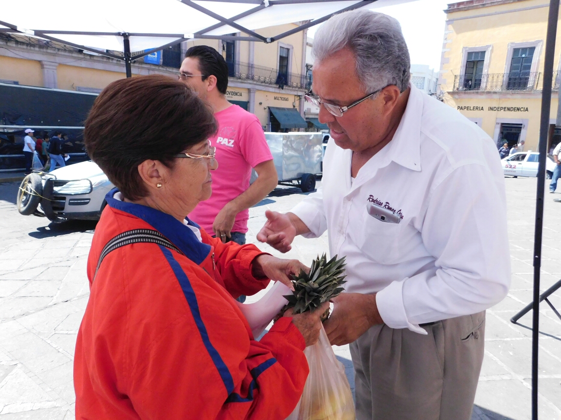 El candidato se reunión con parte de su equipo en el jardín Independencia de la capital donde invitaron a los maestros que pasaban por el lugar para realizarles un obsequio modesto.