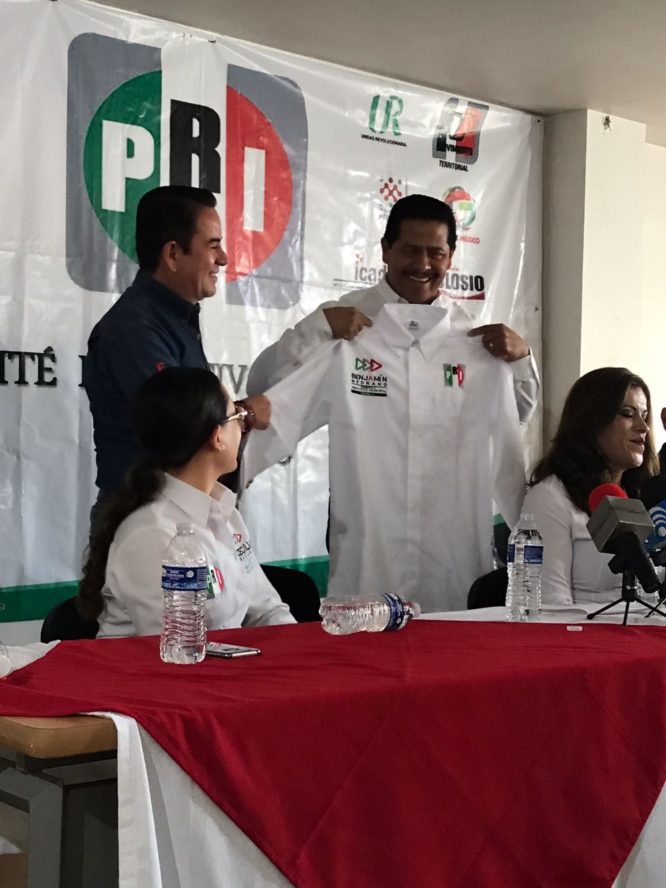 “Hoy me acompañan tres grandes personas, Ángel Carrillo joven destacado, que trabajó en las colonias Lienzo Charro, Miguel Hidalgo, y Linda Vista le apostamos a gente que sin ser priista apoya este proyecto; a Gerardo Leyva Hernández a quien reconozco su historia política y la altura de miras, y aun viniendo de otras expresiones, habiendo sido diputado Federal por el PRD, hoy se integra de manera oficial a este proyecto.