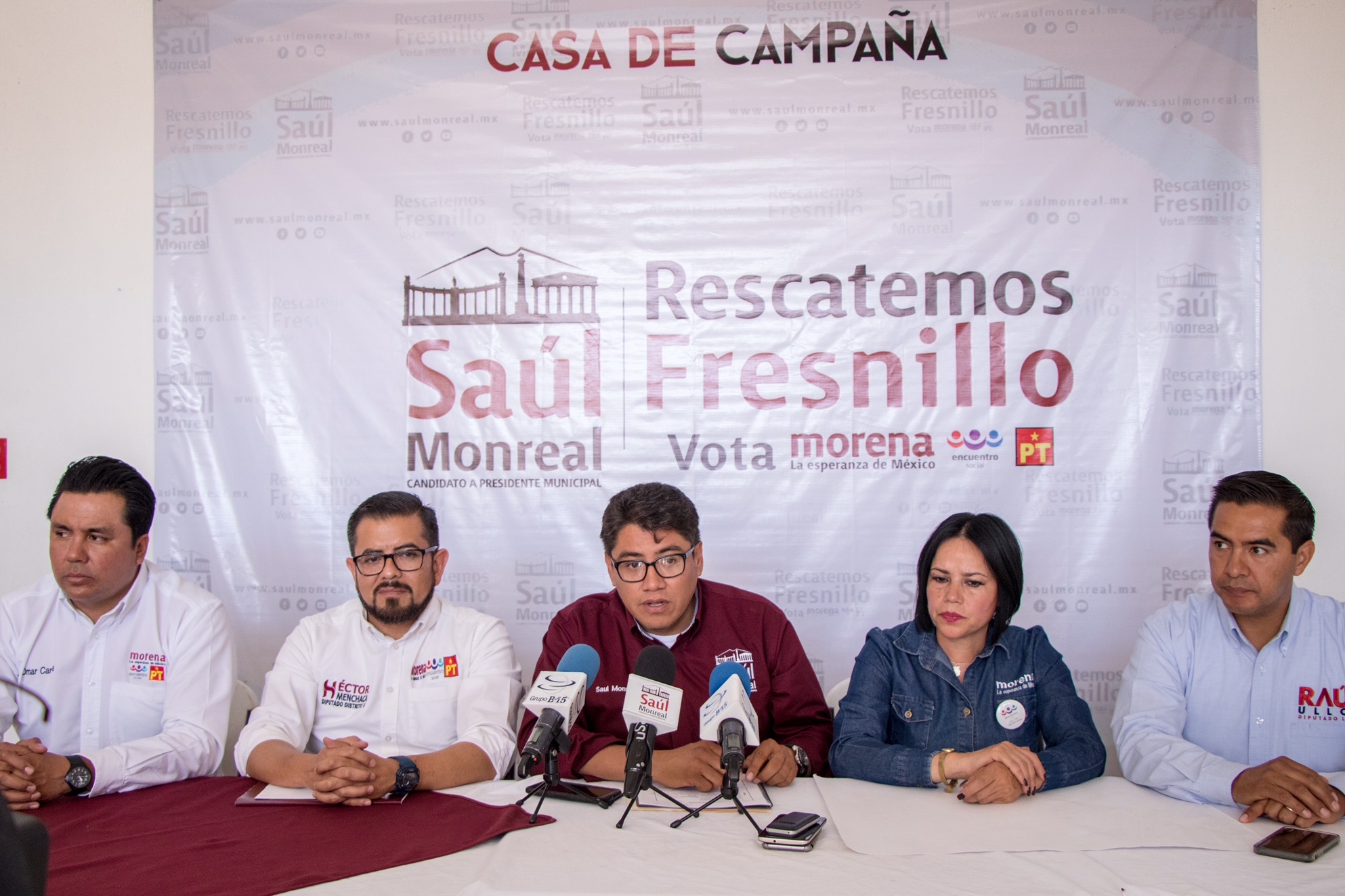 En la conferencia de prensa, estuvo acompañado por Mirna Maldonado, candidata a diputada federal por el distrito 1; Héctor Menchaca, Raúl Ulloa y Omar Carrera, aspirantes a legisladores locales por los distritos 5, 6 y 7, respectivamente.