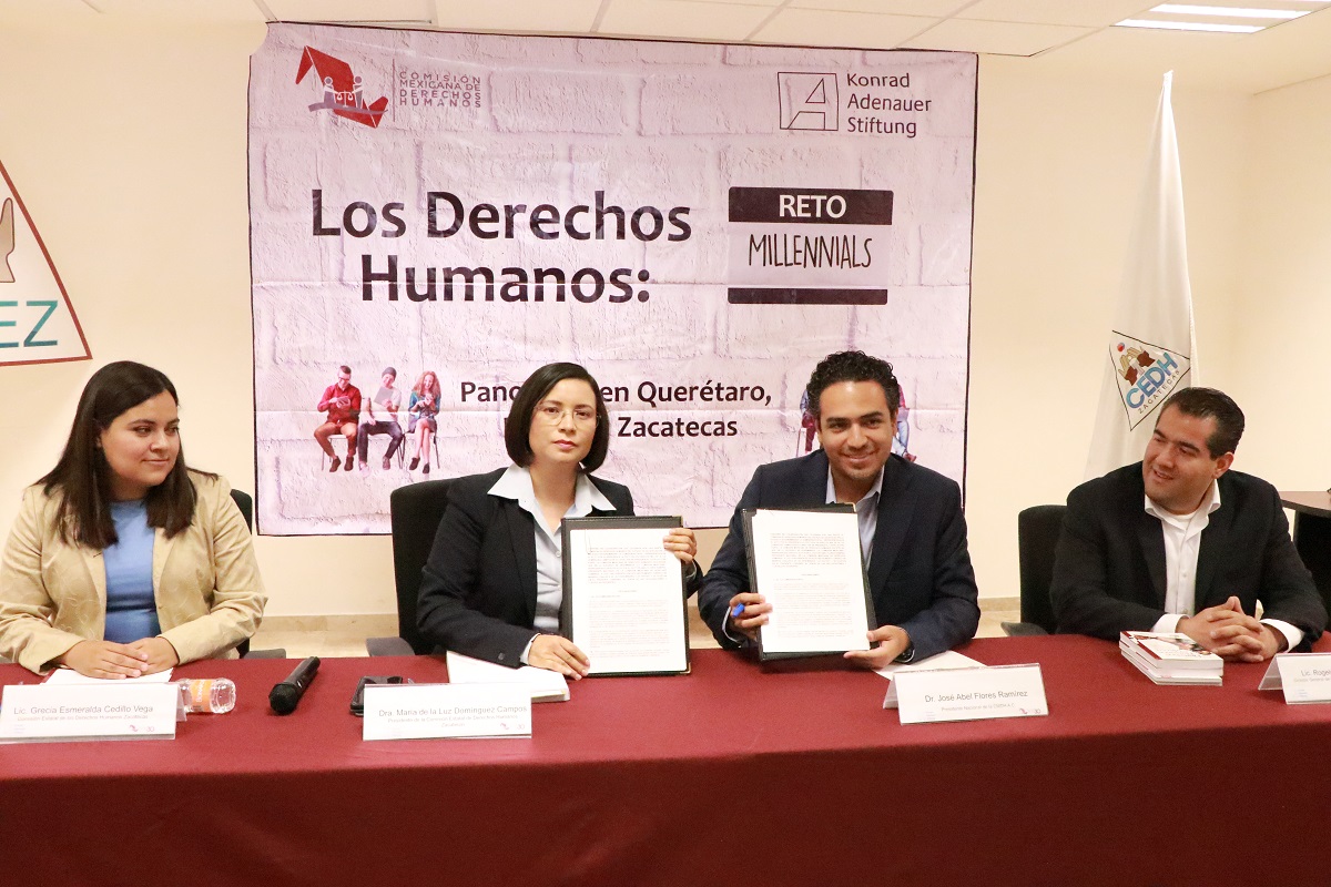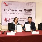 Además, cabe resaltar que durante la conferencia de prensa, se celebró la firma del convenio de colaboración entre el Organismo Defensor de los Derechos Humanos en Zacatecas y la Asociación Civil denominada “Comisión Mexicana de Derechos Humanos”, para estrechar lazos de colaboración para la promoción, estudio y divulgación de los derechos humanos, a través de la capacitación por medio de cursos, talleres y conferencias.