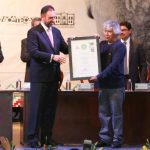Este viernes, en el teatro Hinojosa, en el marco de las Jornadas Lopezvelardeanas y el 130 aniversario del natalicio del autor de ‘La Suave Patria», el Gobernador Tello entregó una medalla, reconocimiento y un estímulo económico por 225 mil pesos a Sampedro, a quien le reconoció su compromiso con las letras mexicanas.