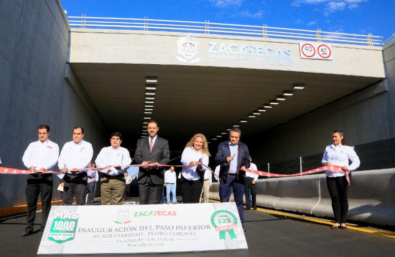 La conclusión de este paso inferior representa la acción número 270 del programa Más de Mil Obras para Zacatecas y se conforma por cuatro carriles inferiores, además de la modernización de los cuatro superiores, donde descansa una glorieta que agiliza la movilidad de automovilistas de largo itinerario.