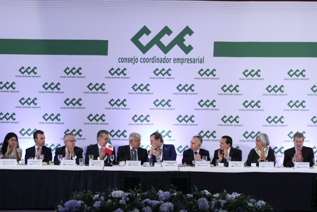 Ciudad de México, 04 de julio de 2018.- Ante integrantes del Consejo Coordinador Empresarial, Andrés Manuel López Obrador aseguró que hay un ambiente de confianza en el país, el cual seguirá, porque se inaugura una etapa nueva de México, ya que “se transformará al país por el camino de la concordia, no se va a imponer nada, vamos a argumentar, vamos a convencer”.