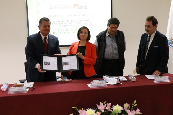 La Comisión de Derechos Humanos del Estado de Zacatecas (CDHEZ) y el Servicio Postal Mexicano, en compañía del Club de Filatelia en Zacatecas, realizaron la Cancelación de primer día de emisión de la estampilla conmemorativa #Aquí Estoy: “Día Mundial contra la Trata de Personas”.