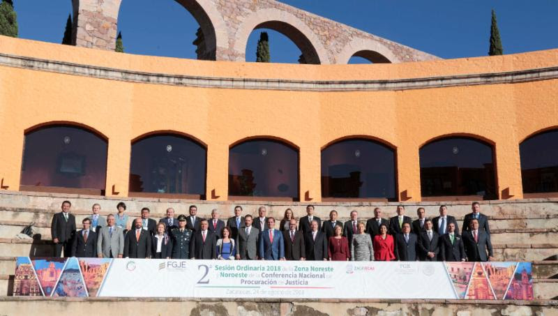 Durante la Segunda Sesión Ordinaria 2018 de la Zona Noreste y Noroeste de la CNPJ, celebrada en Zacatecas, el mandatario solicitó a los tres Poderes unirse, bajo el respeto a la autonomía, para coordinar estrategias que fortalezcan la procuración de justicia y así combatir la impunidad y la incidencia delictiva.
