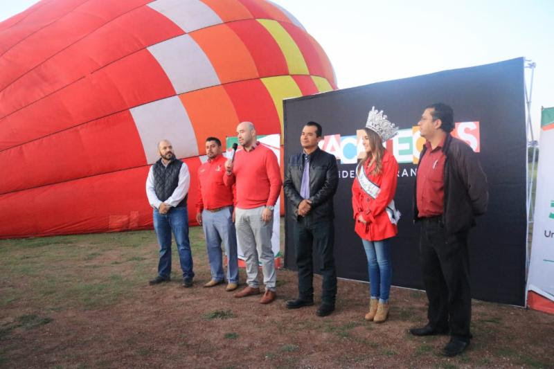 Jerez, Zac.- La mañana de este viernes autoridades de la Secretaría de Turismo (Secturz) y de este municipio realizaron el vuelo inaugural de la nueva experiencia turística que ofrece el estado: Zacatecas Vuela en Globo.
