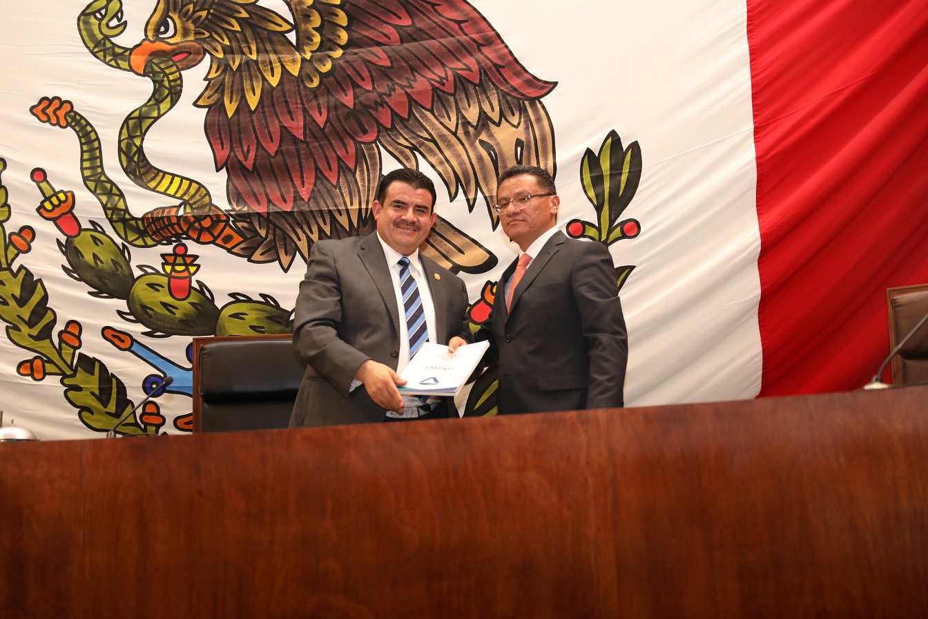 El Presidente del Tribunal Superior de Justicia hizo la entrega oficial de su informe de actividades al Diputado José María González Nava y señaló que “hoy, más que nunca, los tres poderes del estado, tenemos como desafío fundamental, realizar aportaciones significativas para la consolidación del Estado de Derecho y para brindar una mayor seguridad”.