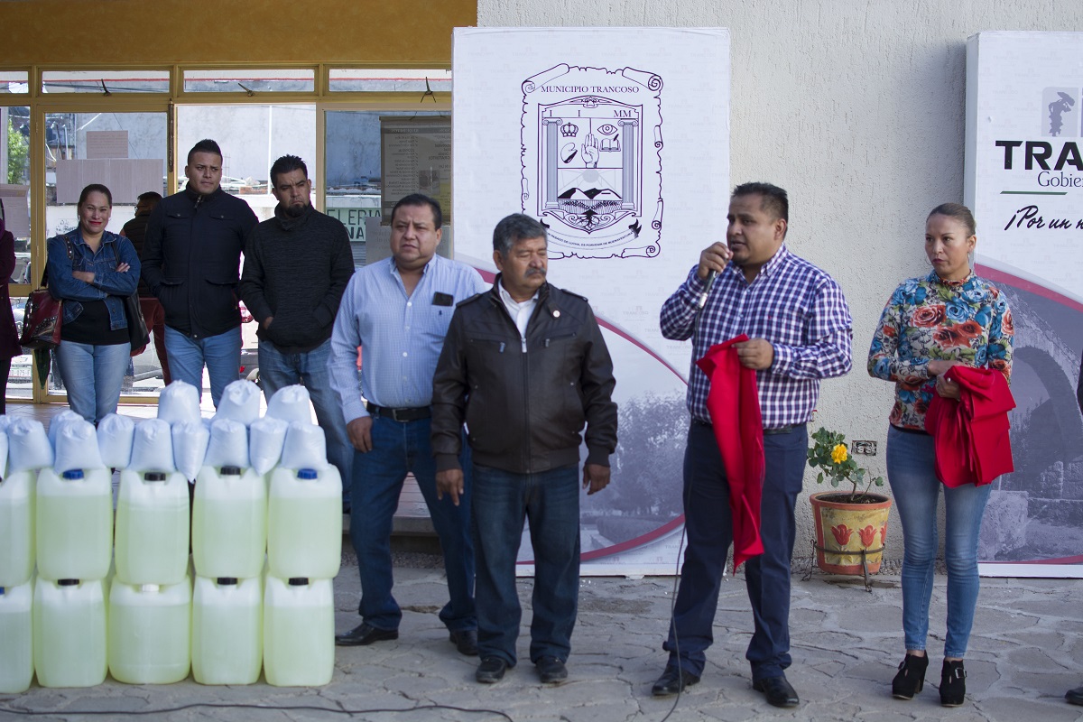 El alcalde antorchista de Trancoso, César Ortiz Canizales, efectúo la entrega de estos insumos consistentes en casaca distintiva, escobas, trapeadores, recogedores, detergentes y químicos limpiadores; los cuales informó se están renovando con periodicidad a fin de este personal cuente con lo necesario para su labor.