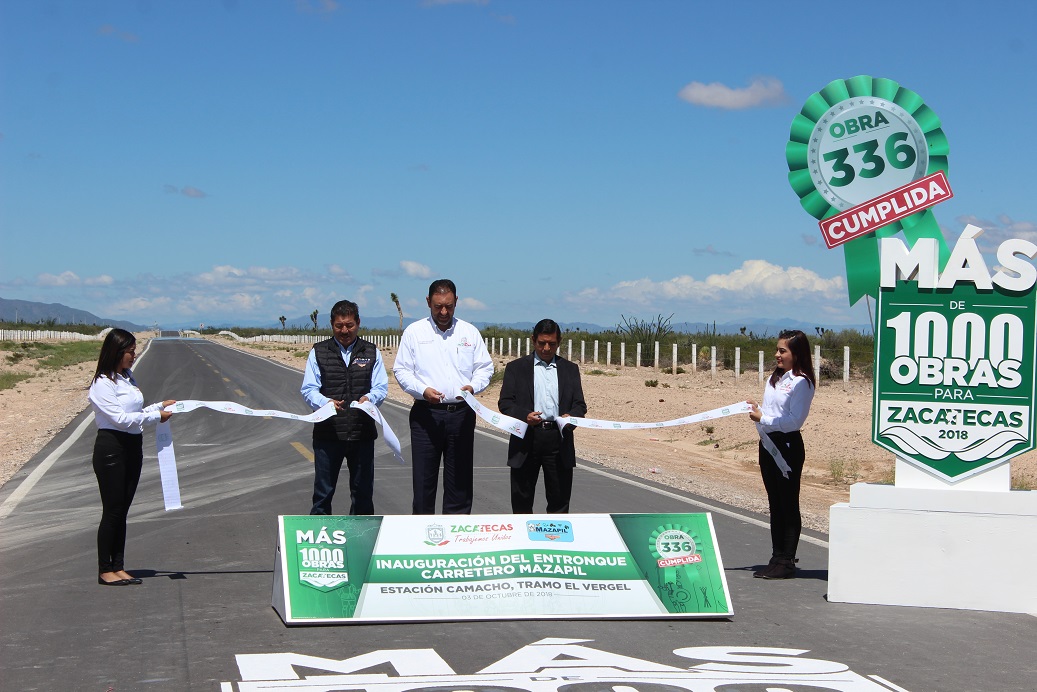 La primera meta cumplida fue la inauguración del entronque carretero Mazapil-Estación Camacho, obra número 336 dentro de este programa, en la comunidad El Vergel, que requirió de una suma de 11.7 millones de pesos para su realización.