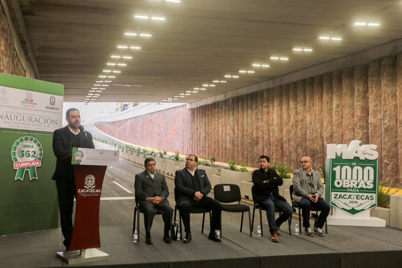 Por su parte, el Secretario de Obras Públicas, Jorge Luis Pedroza Ochoa, agregó que el paso inferior vehicular es parte del crecimiento económico de Zacatecas, ya que coadyuvará a mejorar los servicios, agilizará tiempos y ayudará a que las personas lleguen con calidad y oportunidad a su destino.