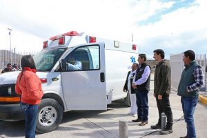 Cedros, Mazapil.- Con el objetivo de continuar avanzando en el eje de salud e infraestructura, nuestro Presidente Municipal, Prof. Gregorio Macías en conjunto con la minera Peñasquito firmaron convenio e hicieron entrega de una ambulancia para la Unidad Médica Rural “Cedros”, conjuntamente se dio arranque a la construcción del andador peatonal de 1,194.1 ml a un costado del Boulevard que dirigirá a la comunidad de Cedros.