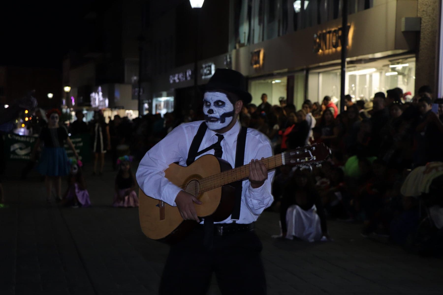 Fresnillo Zac.- El Instituto Municipal Fresnillense para la Cultura, en coordinación con el Departamento de Acción Cívica, la Dirección de Seguridad Pública, la Policia de Seguridad Vial y el Pentathlón Deportivo Militarizado Universitario de Fresnillo, realizó el tradicional desfile de Día de Muertos, con un recorrido por las calles García Salinas, Hidalgo, Juárez y Sonora, ante la presencia de miles de familias que observaron el espectáculo.