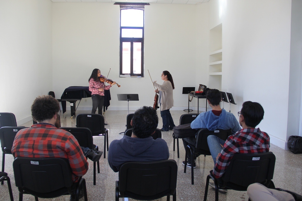 Con el propósito de contribuir a la mejora y profesionalización de los músicos zacatecanos, Ana Carolina Ruelas Valdivia inició con las actividades del Festival de Música Manuel M. Ponce 2018, que organiza el Instituto Zacatecano de Cultura (IZC) “Ramón López Velarde”, al impartir su clase magistral de violín y viola.