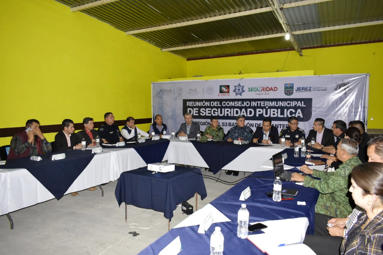 El alcalde de Jerez, Antonio Aceves Sánchez, estableció acuerdos y estrategias conjuntas con 13 municipios para salvaguardar la integridad de la ciudadanía durante la reunión del Consejo Intermunicipal de Seguridad Pública, perteneciente al 53 Batallón de Infantería.