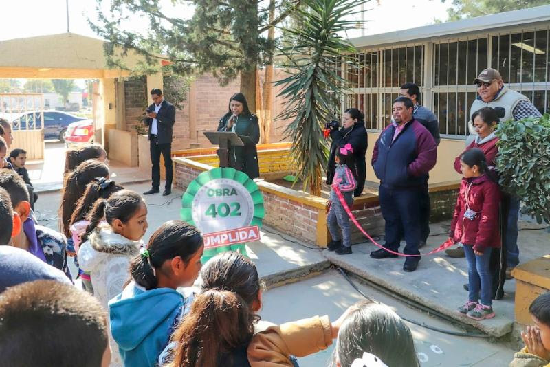 A nombre del Gobernador Alejandro Tello, la titular de la Secretaría de Desarrollo Urbano, Vivienda y Ordenamiento Territorial (Seduvot), María Guadalupe López Marchant, junto con el alcalde José Luis Figueroa Rangel, entregó dichas obras a la comunidad escolar.