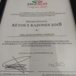 El Premio Estatal Retos y Razones 2018 consistente en una presea de plata y un reconocimiento, y con el que el gobierno estatal reconoce el esfuerzo, trayectoria y labor de una persona con discapacidad y una institución a favor de su inclusión social.