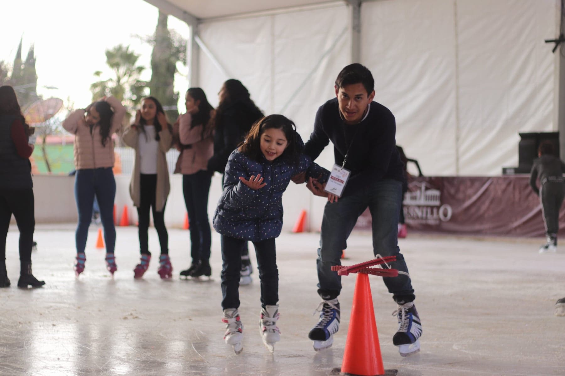 Fresnillo, Zac.- Más de 35 niños de la comunidad Piedras disfrutaron de una sana convivencia en la Pista de Hielo que se instaló en el Monumento a la Bandera, gracias al apoyo del Gobierno Municipal.