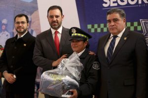 Durante la celebración, Tello Cristerna entregó estímulos económicos de 2 mil 300 pesos por cada cinco años de labores al personal de Seguridad Vial; además de reconocimientos por 30 años de servicio a Tomás Castañón, Miguel Martínez, Manuel Lamas, José Menchaca y Margarito Soriano.
