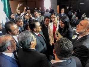 A la reunión fueron acompañados por Alfredo Femat y Reginaldo Sandoval, secretario de la Comisión de Educación en la LXIV Legislatura Federal y coordinador del Grupo Parlamentario del Partido del Trabajo, respectivamente, ambos legisladores del PT.