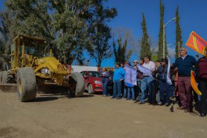 Fresnillo Zac.- Se invertirá un presupuesto de casi 18 millones de pesos en la primera etapa de pavimentación de la calle Gabriel Lugo, para transformarla en una moderna vialidad de acceso a la Unidad Deportiva Benito Juárez, arrancando con el banderazo del Alcalde Saúl Monreal Ávila a la maquinaria pesada, en medio del entusiasmo y los aplausos de deportistas de todas las disciplinas.