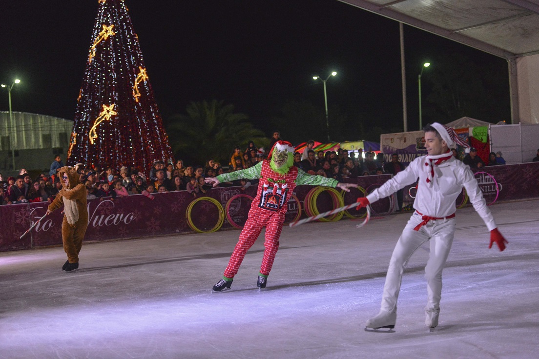 Fresnillo Zac.- En la Pista de Hielo del pasaje decembrino, ubicada en el Monumento a la Bandera, se presentó un excelente espectáculo de patinaje: “La Navidad del Grinch”, del elenco internacional de “Roncaly On Ice”, provenientes de 5 países, quienes sorprendieron a los Fresnillenses.