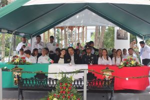 En su mensaje el Presidente Municipal, se congracio de ver a los niños reunidos para ser partícipes de este evento que nos distingue como mexicanos también agradeció a las maestras y maestros presentes el fomento al valor cívico en los pequeñines.