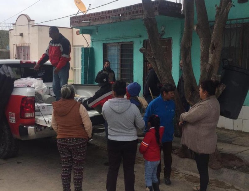 En representación del Gobernador Alejandro Tello, acompañado por el presidente municipal, Anastasio Maldonado Falcón, Salas Dávila supervisó la entrega de 30 colchonetas, 25 cobijas, 20 despensas, 15 equipos de limpieza y rollos de hule a la población afectada.