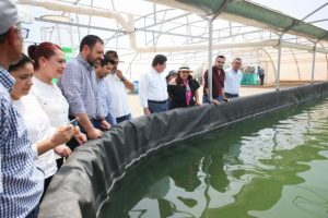 Para ello, se trabaja en la instalación de granjas acuícolas. Es el caso de Asul SPR de RL, ubicada en San Jerónimo, Guadalupe, donde Tello verificó el crecimiento de este lugar, que tiene una capacidad de producción de 85 toneladas de tilapia al año.