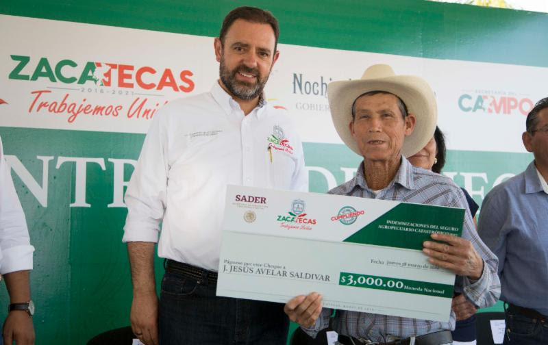 Más tarde el Gobernador pagó a 50 productores de maíz, mil 500 pesos por cada hectárea siniestrada a causa de catástrofes climáticas. Ello, a través del Seguro Agropecuario Catastrófico con el cual el mandatario abarcó una cobertura de 239 hectáreas.
