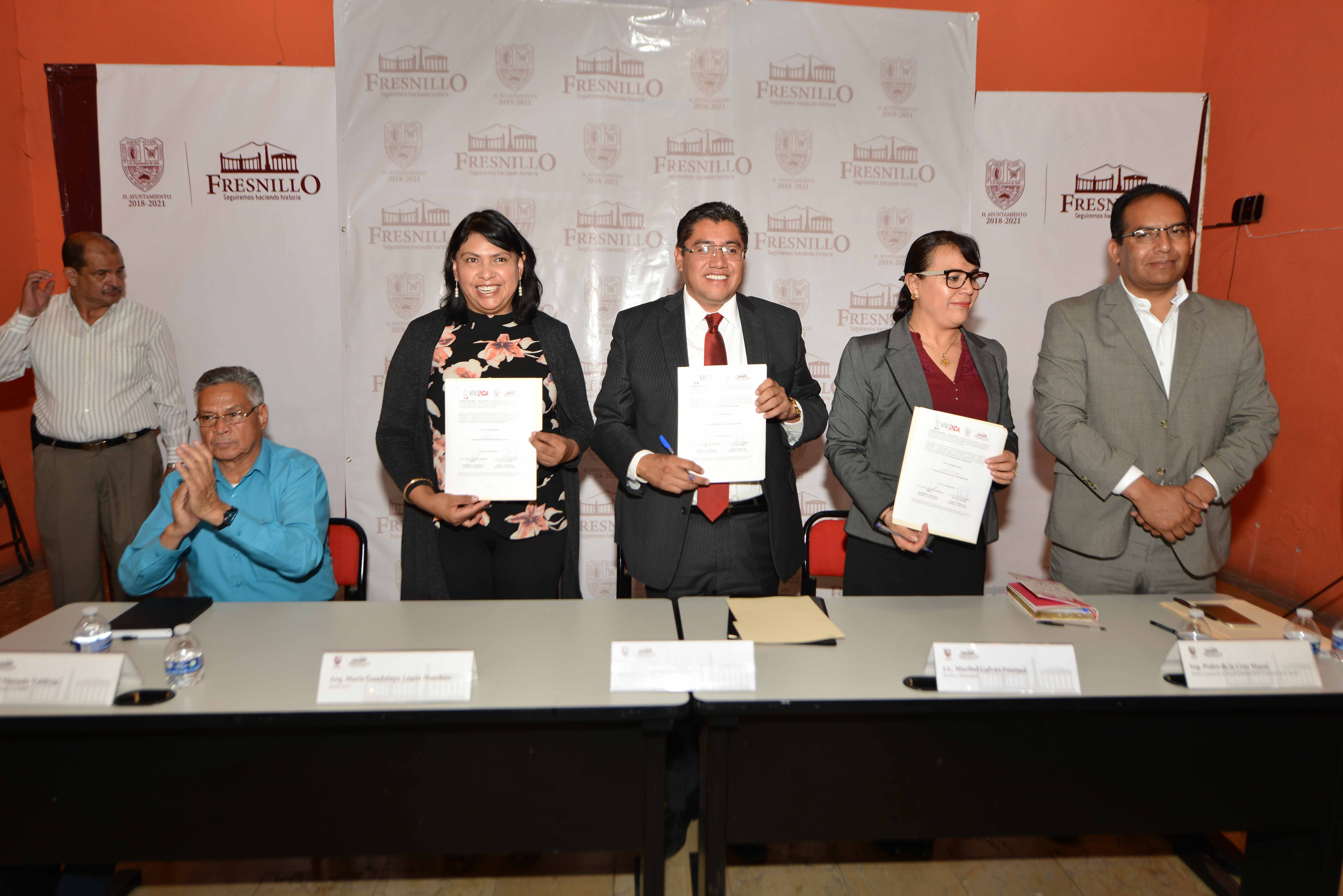 Las acciones que se implementarán como parte del convenio que firmaron son: Actualización del Programa de Desarrollo Urbano de Fresnillo; Regularización de la Tenencia de la Tierra; Certificación y Adopción del Dominio Pleno, en terrenos inmersos en el Régimen de Fraccionamientos Rurales y Regularización de Espacios Públicos.